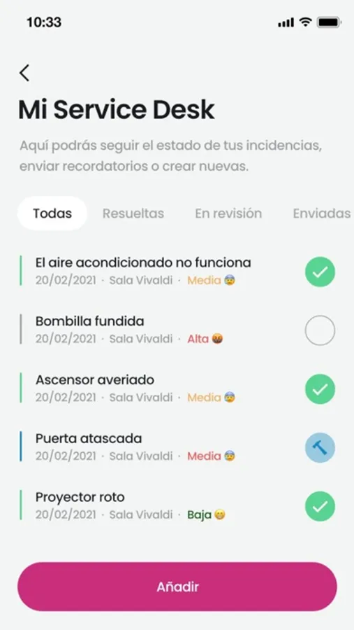 Registra tus jornadas, reporta incidencias o solicita servicios y sigue su evolución en un clic.