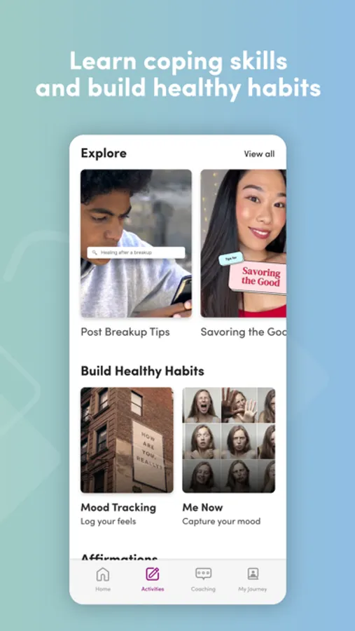 -Through content, coaching, and activities in the app, BeMe teaches you a variety of skills and coping strategies to get you through life’s tougher moments.