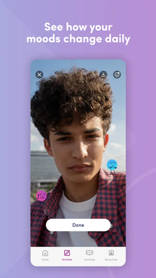 -Check-in with your mood every day. Find patterns by snapping pics and using the mood slider.