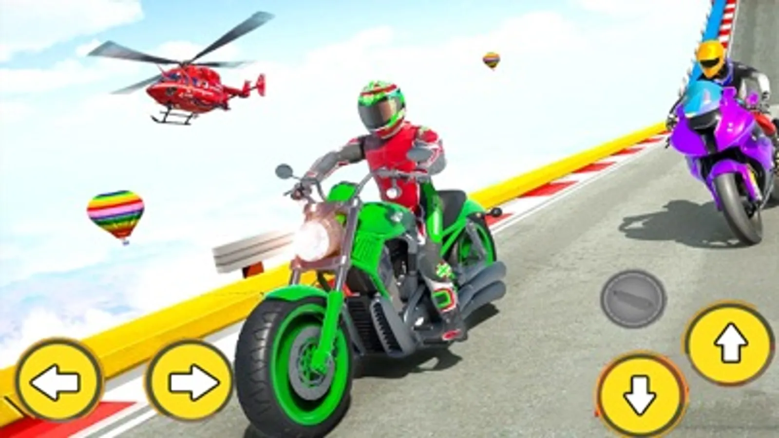 Riding your super moto bike at super fast speed is always thrilling and adventurous, if you are fond of motorbike game on crazy impossible tracks, then this Mega Ramp bike impossible tracks is the perfect option to choose with. Mega Ramp Bike stunt game makes you a Bike Racer Stunt Master. While crossing the hurdles you have to slow down or reduce your bike games speed don't over speed motor bike because your level will be failed and you will slip on the narrow tracks and you may fall from the sky tracks into the deep ocean. Come On!! Let’s start the journey filled with amazing stunt bike to choose from and the coolest motorcycle challenge of 2021, be the extreme high speed Motorbike rider driving through mega ramp impossible track stunts.