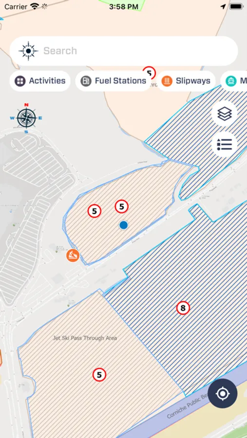 The app allows users to quickly filter the locations on a map where Public can carry out activities such as Swimming, Boating, Leisure fishing, Kayaking, Jet-skiing, Snorkelling and other activities in the Abu Dhabi waters.