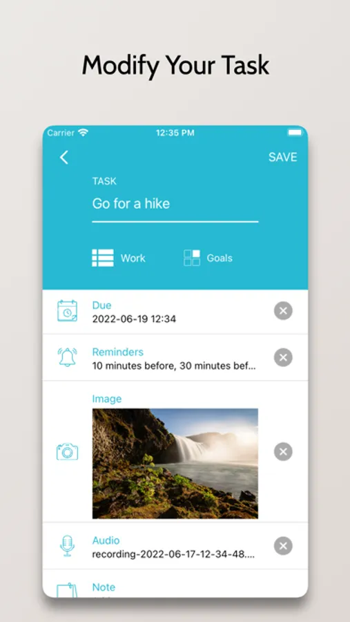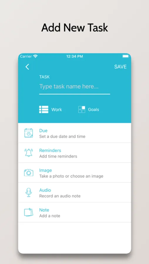 You can also add an audio recordings to a task. If you want add a task with much more information, audio recording is the way to go.