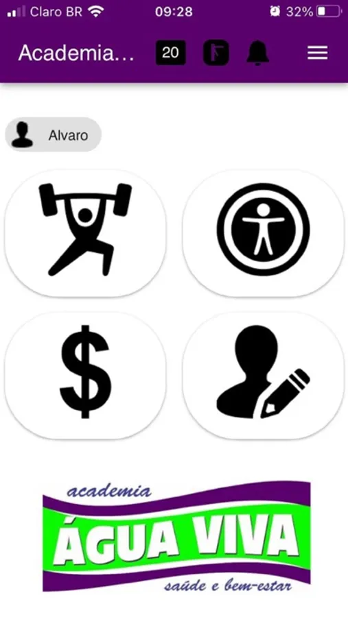Aplicativo Academia Agua Viva que permite ao aluno da academia acessar diversas informações de forma simplificada. O aplicativo permite também que o dono da academia tenha uma visão completa dos principais indicativos da sua empresa e permite que o professor efetue alterações no treino do aluno!
