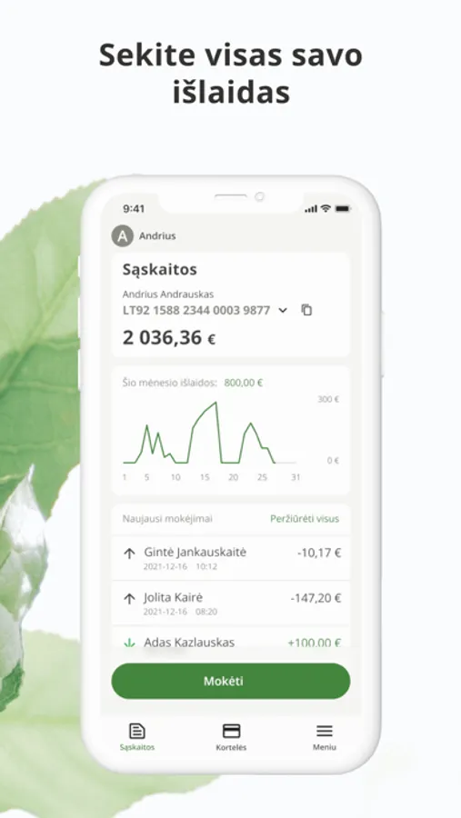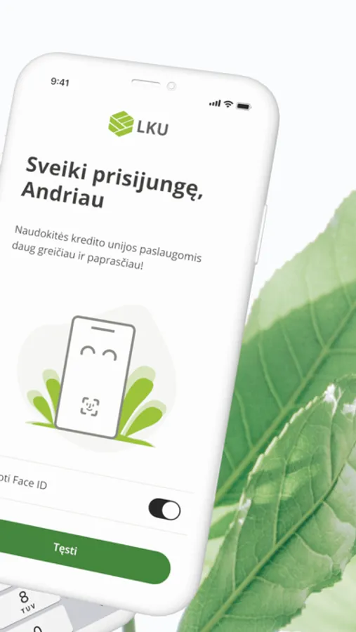 • Nustatykite prisijungimą biometriniais duomenimis (piršto atspaudu ar veido atvaizdu) ir prie programėlės prisijunkite dar paprasčiau.