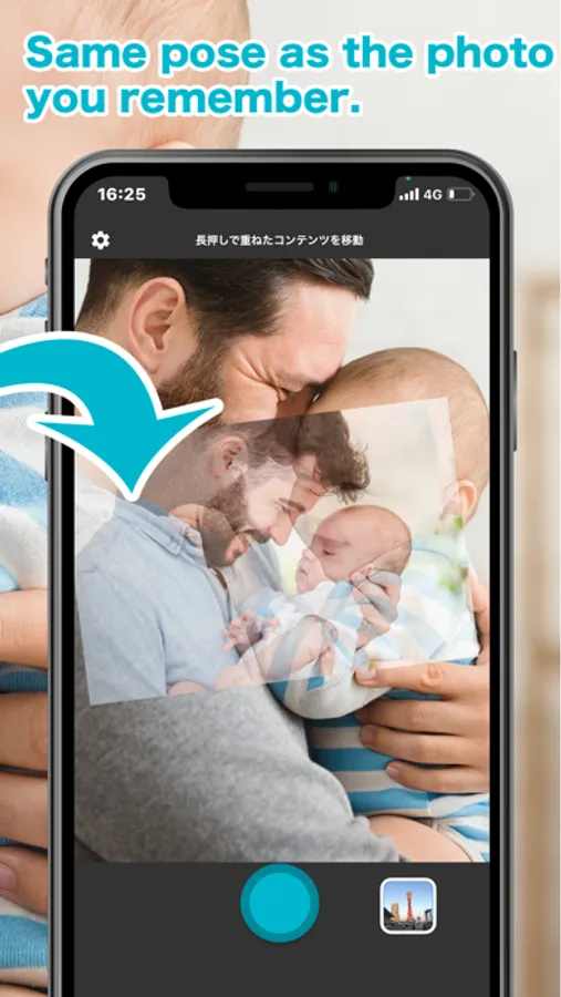 The reason why I developed this app was because I wanted to take pictures of my son in the same pose as the pictures taken of me when I was little.