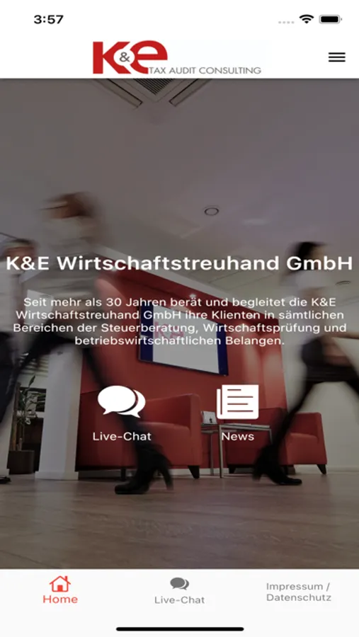 Die kostenlose K&E Wirtschaftstreuhand App bietet Ihnen einen digitalen Zugang zu unseren Beratungsleistungen, die alle Bereiche der Steuerberatung, Wirtschaftsprüfung und des damit zusammenhängenden betrieblichen Consultings umfassen.