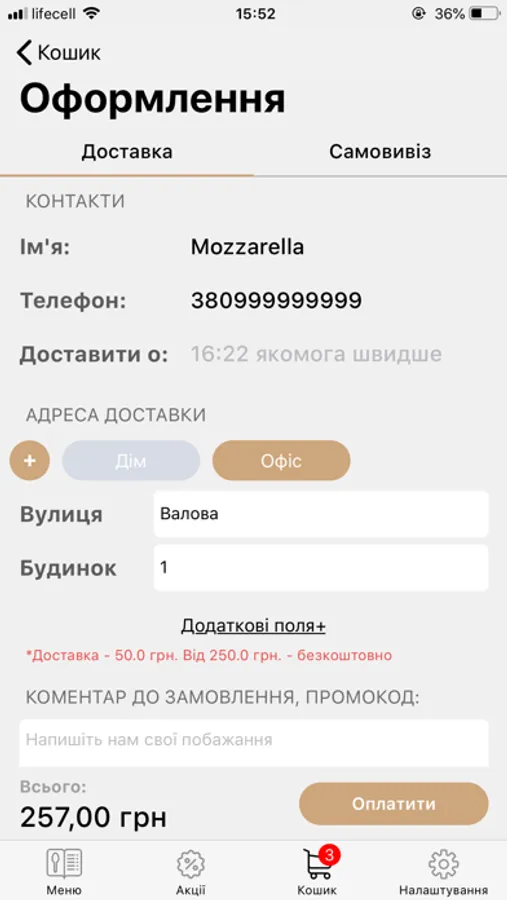 • встановити бажаний час доставки замовлення за вказаною адресою;