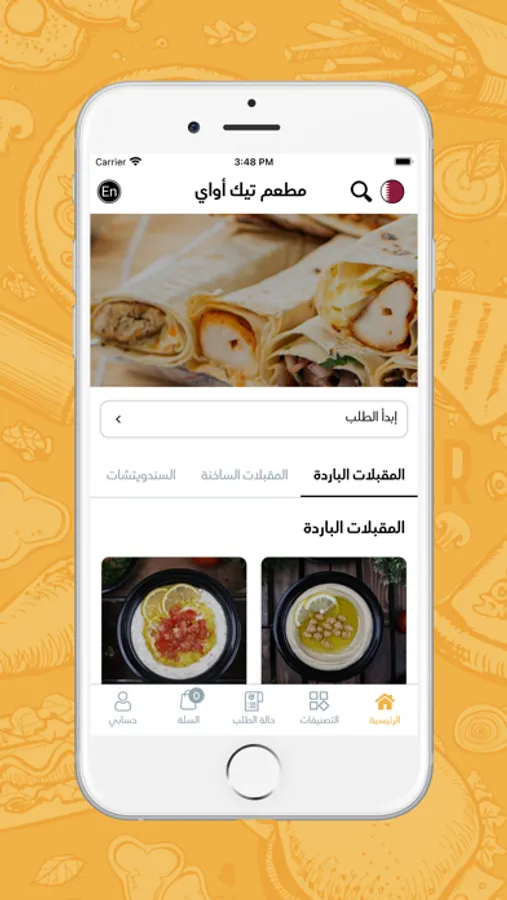Take Away application is your gateway to buy your a hot meal. All you need to do is: open the application, then click on the suitable category, all the available dishes will appear to you, add what you want to your cart. Finish the process by filling the wanted information to have your order like: the preferable payment method and the delivery information.