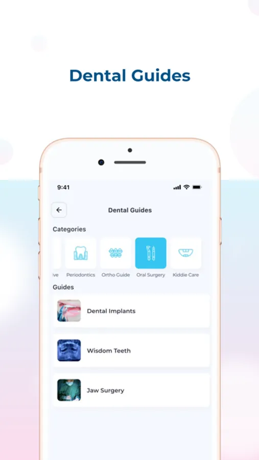 The dental guides encompass all the relevant fields within dentistry and is beneficial as a communication tool for clinicians as well as a knowledge centre for the general public, to bridge the gap between dentists and patients. These dental guides are a collection of written information, pictures, videos and useful websites which include the following topics: