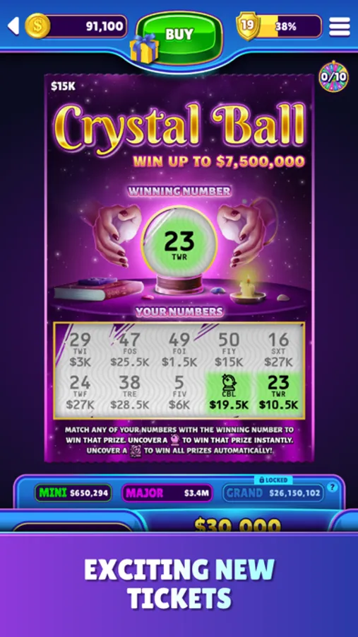 ● Tons of authentic tickets including Instant Money, Gold Rush, Crystal Ball, and many more