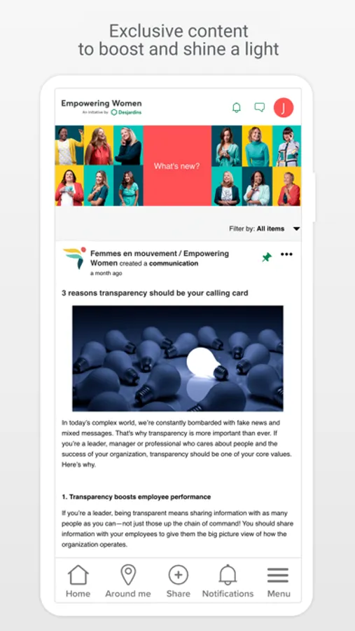 Offer women at Desjardins a variety of materials and content to help them grow personally and professionally.
