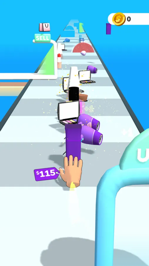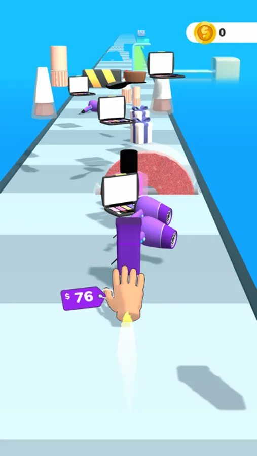 You can collect and stack whatever you want! Let's try to collect all beauty and make-up materials on the platform and sell them to earn money more.