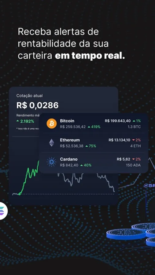 Com alertas cripto avançados, você não vai perder nenhuma oportunidade de compra ou venda. Acompanhe o mercado de capitalização de moedas, valor ao vivo de mais de 10.000 criptomoedas em tempo real, e acesse gráficos e dados analíticos.