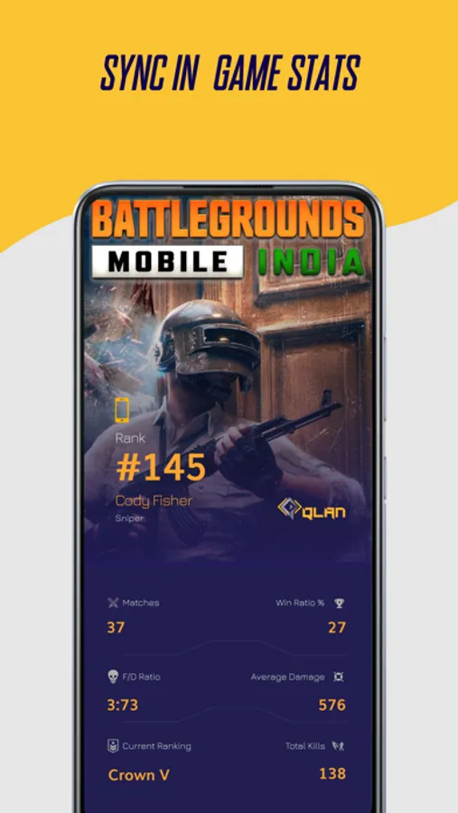 On Qlan, you can sync the in-game statistics of games you play across mobile, PC and console. Battlegrounds Mobile India? Yes! PUBG, FreeFire, Clash Royale, DOTA 2, Valorant, CS GO, COD Warzone and the list goes on - all game stats are included in a single account for easy access anywhere at any time. Qlan also ranks you based on your in-game performance.