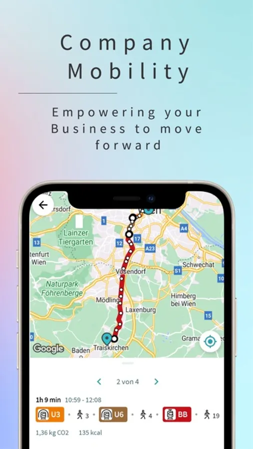 FluidLife has integrated a route planner including a departure monitor. This shows you the fastest way to get to your destination at any time. Be it on foot, by bike, public transport or by car. A CO2 calculator helps you to choose the right means of transport.