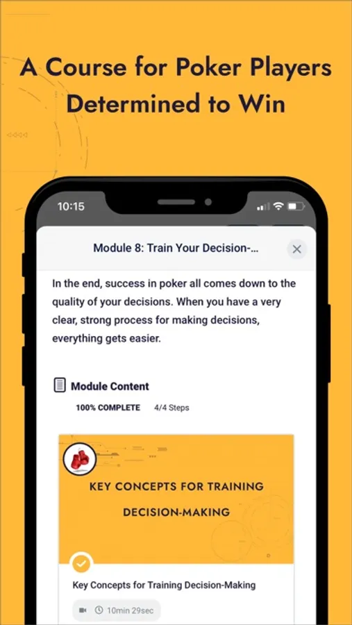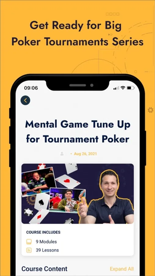 Offering eight distinct modules to get you ready for any poker tournament series, this is the course for players determined to win. Accessing it via the app makes it portable and even easier to use when you need it. The course includes a total of 35 videos and runs just over 13 hours long.