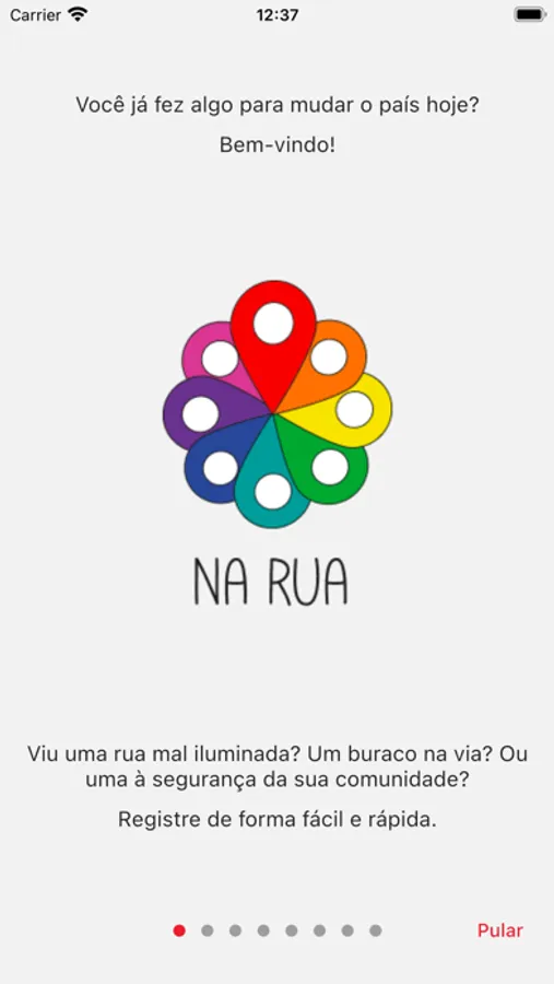O Na Rua possibilita que você envie um alerta sobre um problema encontrado direto para a autoridade responsável pela solução e para um representante da Sociedade Civil Organizada! Viu um buraco? Uma rua mal iluminada? Ou entulho na calçada? Reporte o problema!