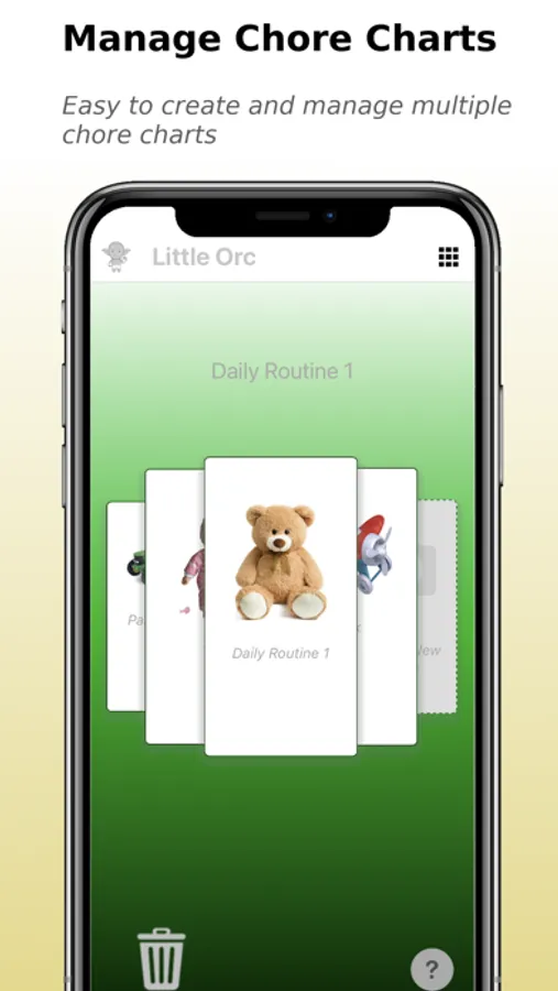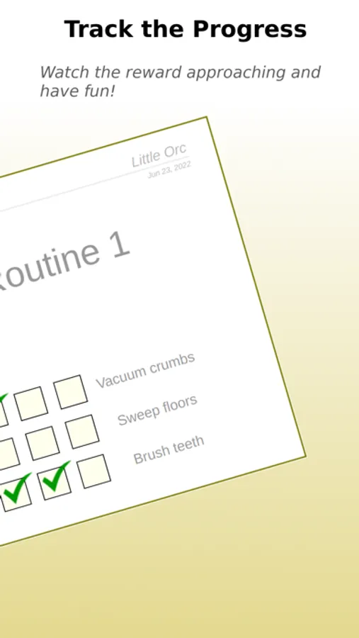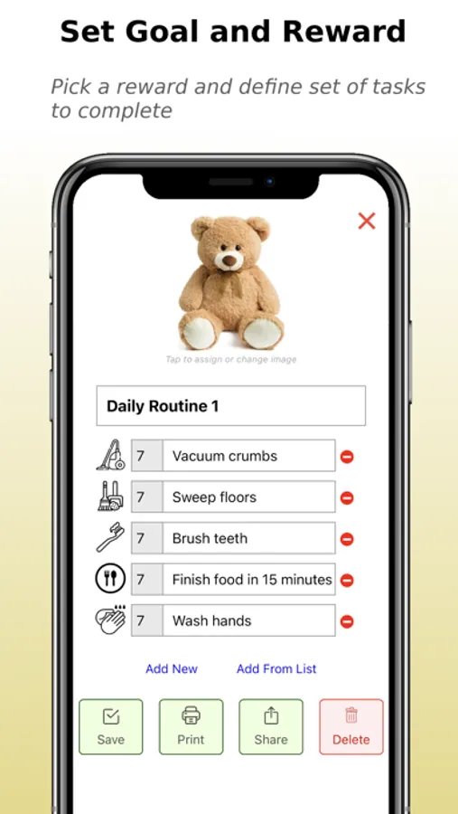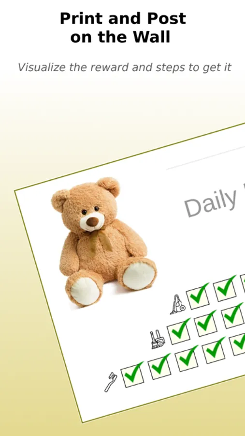 Little Orc app allows you to conveniently select a picture of the toy you choose, define tasks, and print the chart right from the app. Once the chart is on the wall, it provides great visual indication of the goal and the progress.
