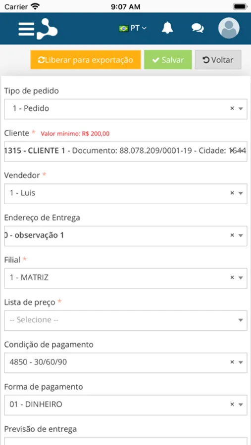 O vendedor ou representante emite o pedido seguindo todas as politicas comerciais da sua empresa. Em seguida o pedido é sincronizado para a nuvem do Demander, de lá ele pode ser consultado pelo portal web, ou enviado diretamente para o seu sistema de gestão (ERP) através de integração.