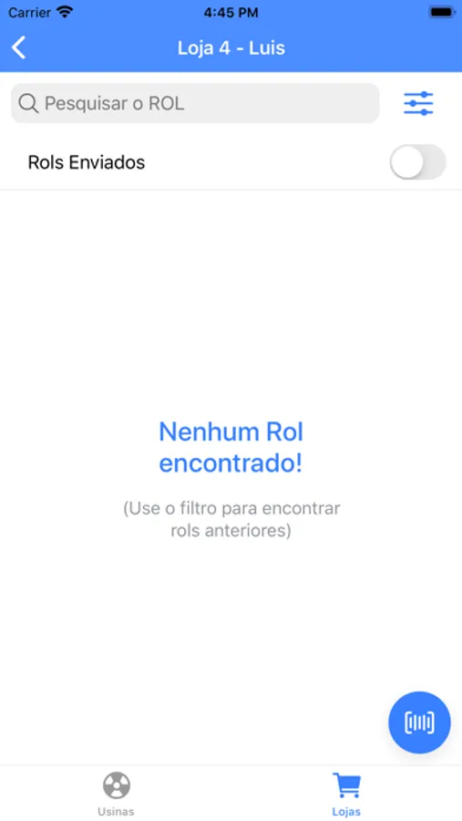 Aplicativo para controle de rol e peças da usina / lavanderia.