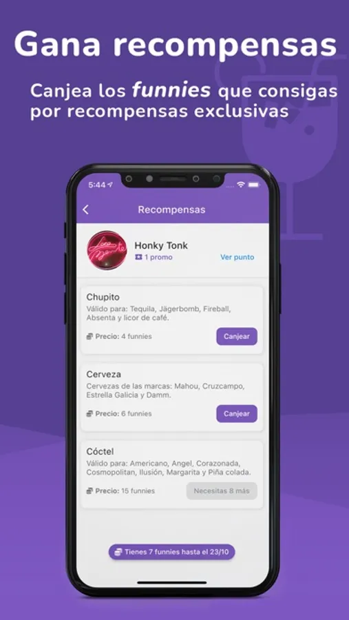 No solo te beneficiarás de promociones únicas, sino que además podrás recibir consumiciones y otros servicios gratis gracias a nuestros funnies. Sí, todo esto en una sola app.