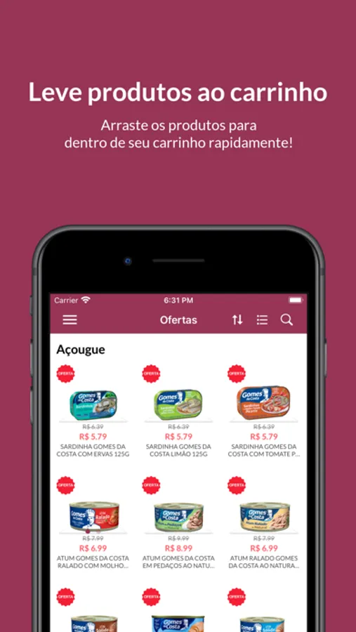• Adicionar produtos no seu carrinho com um simples tocar e arrastar.