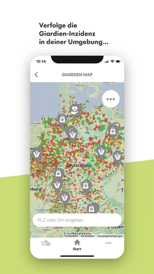 Die Giardien-Map zeigt die Inzidenz der Giardien Fälle in der Region des Users, die auf Postleizahl genau ermittelt und angezeigt wird. Die Inzidenzwerte sind aufgeteilt in drei Kategorien: