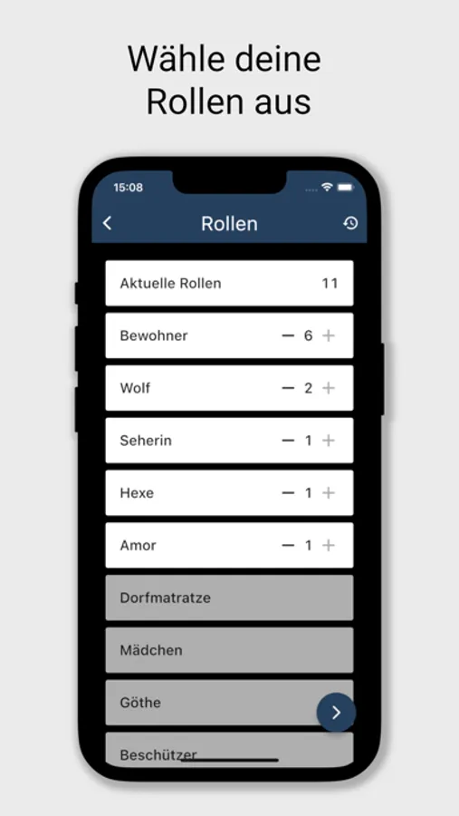 The app makes it easy for you to choose and distribute roles. In addition, it supports you as a moderator during an ongoing game.