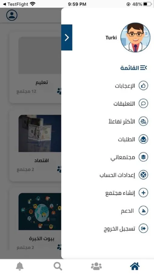 تطبيق مجتمعات هو عبارة عن منصة الكترونية توفر تجربة فريدة من نوعها للمستخدمين حيث يتمكن المستخدمون ذوي الخبرات والقامات في المجالات المختلفة من إنشاء مجتمعات خاصة بهم ونشر معرفتهم وخبراتهم وتقديم استشاراتهم للمستخدمين، سواء كانت استشارات مدفوعة أو غير مدفوعة. وتكمن فكرة المنصة في أنه يمكن لكل شخص أو اكثر من ذوي الخبرة في مجال معين من انشاء مجتمع خاص بهم، على سبيل المثال، عند انشاء مجتمع من شخص واحد أو أكثر من قبل ذوي الخبرات والاستشاريين وبيوت الخبرة فان المجتمع سوف يكون متاح لعامة مستخدمي منصة مجتمعات لمتابعة منشورات وتجارب وخبرات المكونين لهذا المجتمع والاستفادة منها. وأيضا يمكن لذوي الخبرة وعامة المستخدمين من المشاركة في مجتمعات أخرى وإثراء معرفتهم والاستفادة من المعلومات والدورات التي يتم تقديمها في تلك المجتمعات، ويمكنهم التواصل مع المستخدمين الاخرين في المجتمعات الأخرى للحصول على تجربة وخبرات جديدة ولتوسيع مداركهم، والتعامل مع أشخاص من ثقافات أخرى من داخل المملكة العربية السعودية وخارجها.