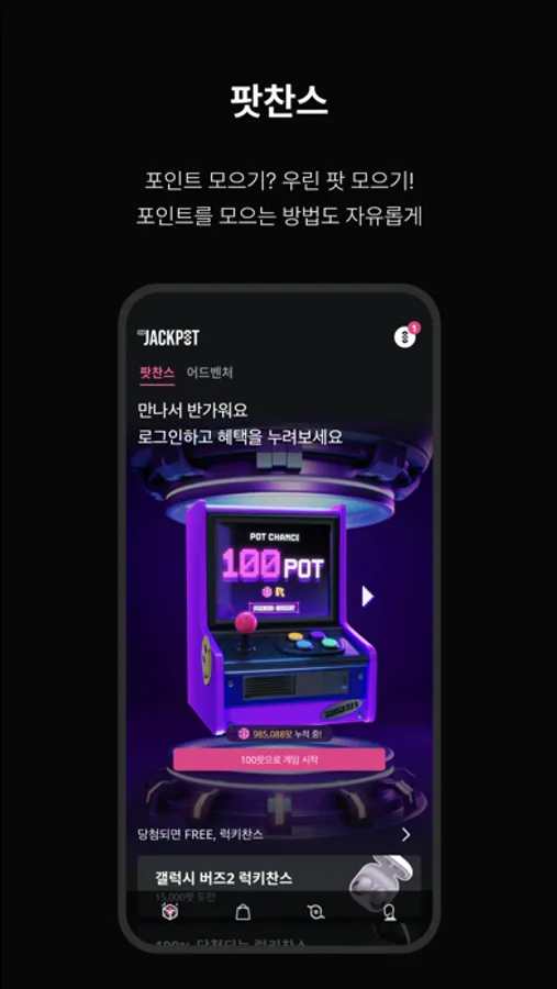 - 앱에서 활동하면 쌓이는 포인트 '팟'으로 원하는 경품에 도전하세요.