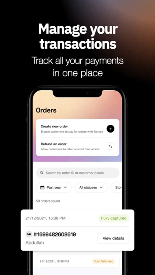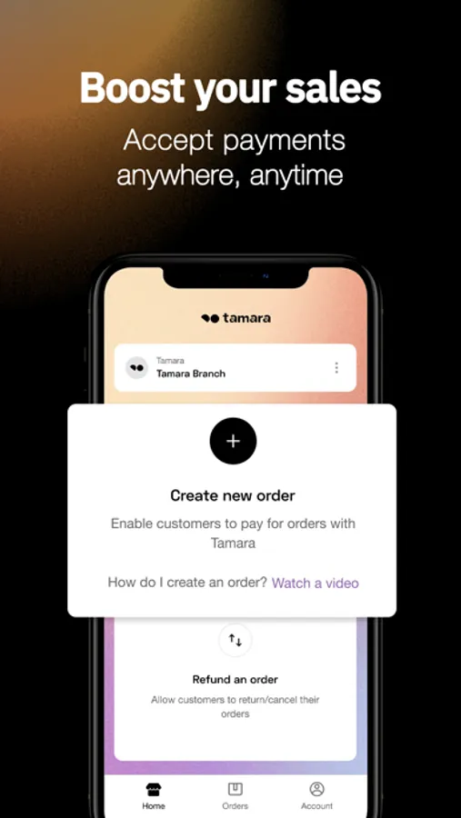 Payments have never been easier and more transparent than with Tamara. With our payment solutions, you’ll be able to give customers the option to shop for their favorite things and split their payments in-store - no fees and no interest. And with our app, you’ll be able to create orders easily and process refunds instantly!