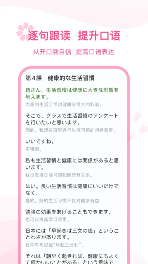 3、离线收听:离线收听节省流量,高速批量无限下载,便于随时随地学日语;