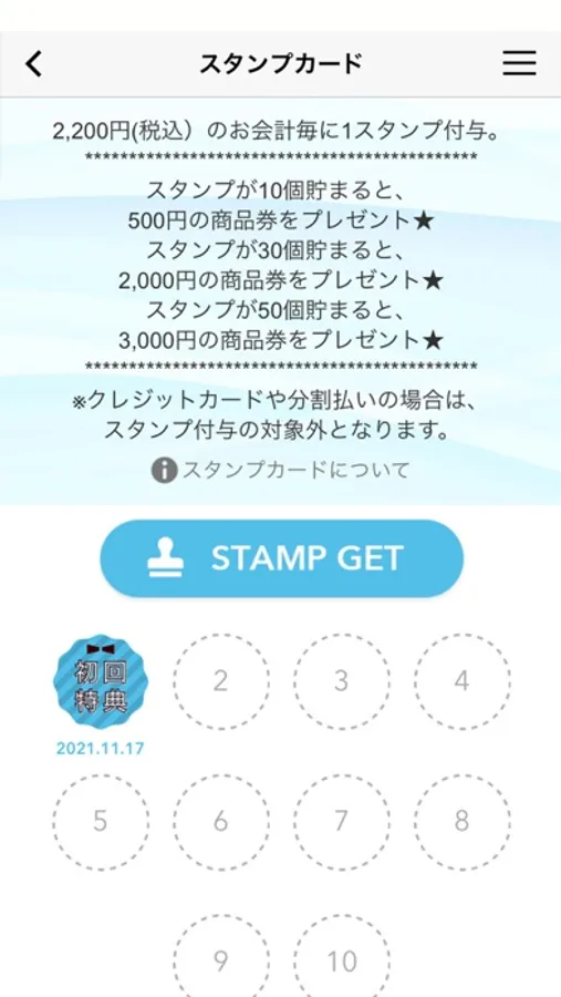 たくさん貯めていただくと次回使える特典をご用意しております。