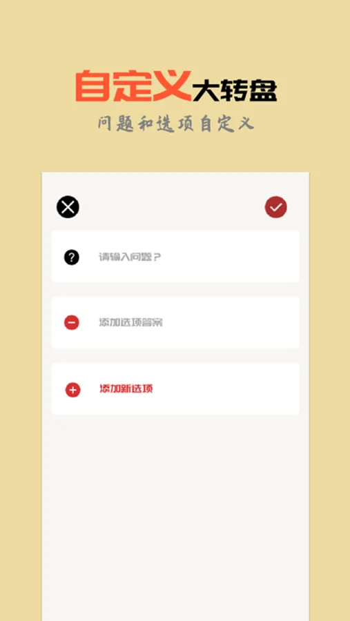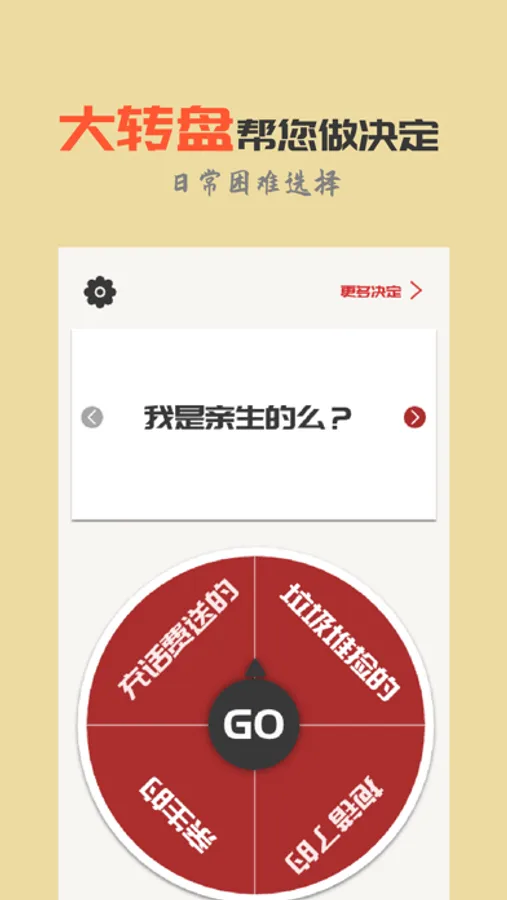 做个决定一个用来帮助你快速做决定的应用。输入你纠结的问题,添加或者导入所有的选项,用转盘来快速决定!