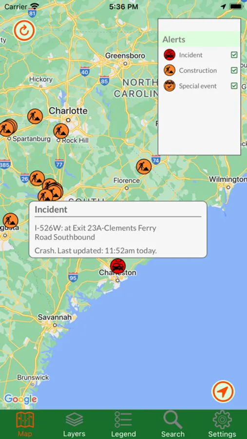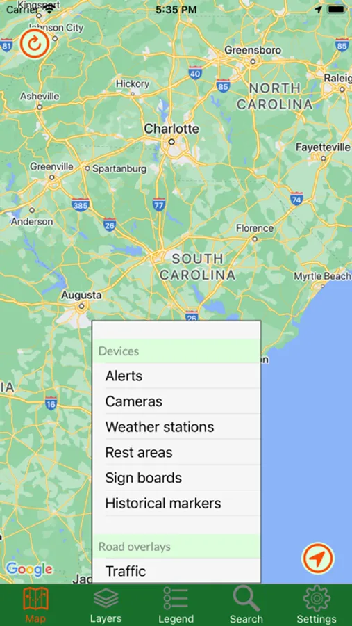 Know before you go. Whether you're a commuter or a recreational traveler, you need information about the road ahead. By accessing SC Department of Transportation road data, you can view traffic cameras, read alerts about construction and other road-related issues, and get stats from weather stations. Also available is Google Traffic, just so you have all the data in one app. And now you can read all those historical markers without getting out of your car! Be smart, be informed.