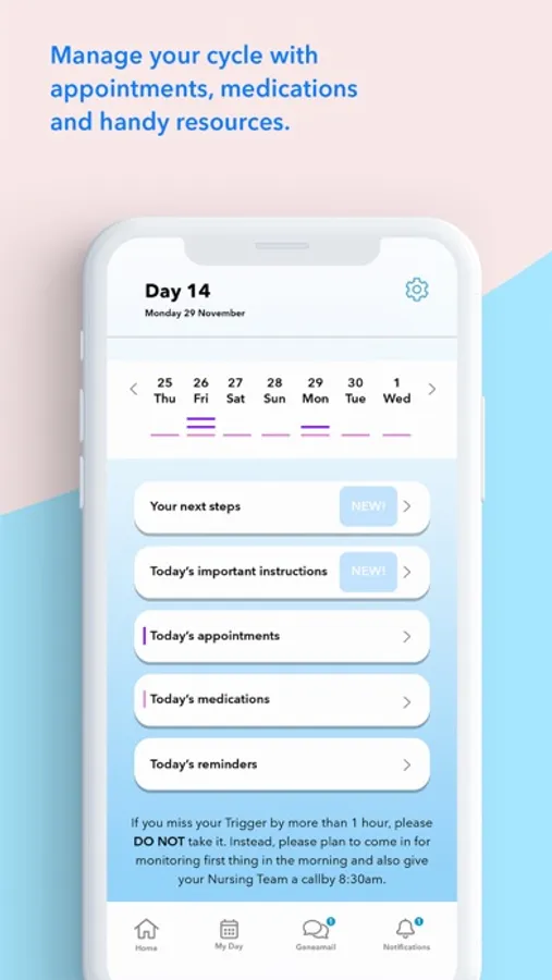 MyGenea is available to patients of Genea Fertility, Genea Elements IVF and Genea Horizon and has been designed to enhance your experience during IVF and egg freezing treatment, ensuring everything you need is at your fingertips.