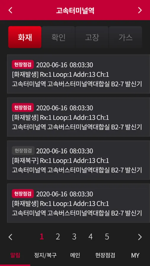 발생된 이벤트를 기준으로 점검을 기록하여 저장할 수 있이며, 통계와 연동하여 월별 화재, 오작동, 수리여부 등의 관리가 가능합니다.
