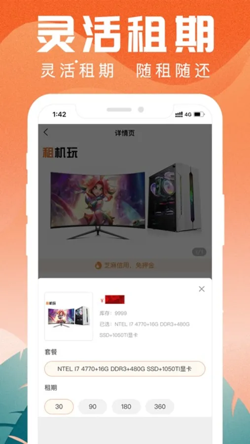 芝麻信用≥600,有机会享受0押金租赁服务,按月付,无压力;