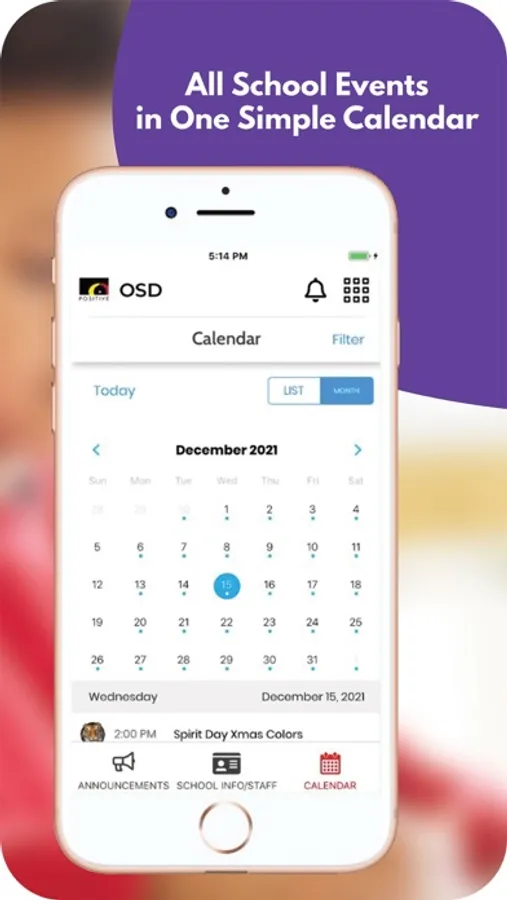 The app includes information for the district and all schools. Filter by the school your child attends to feature information for that school.