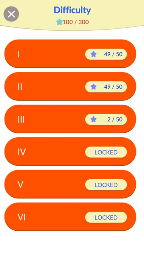 There are 6 levels of difficulty and all 300 stages!