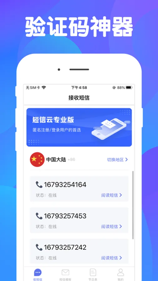 + 无限制号码选择、短信接收