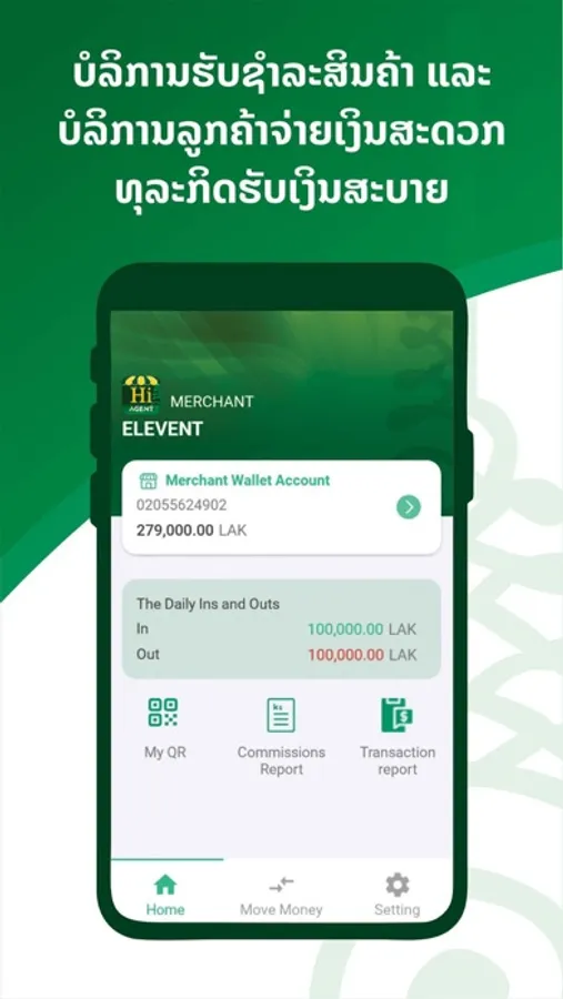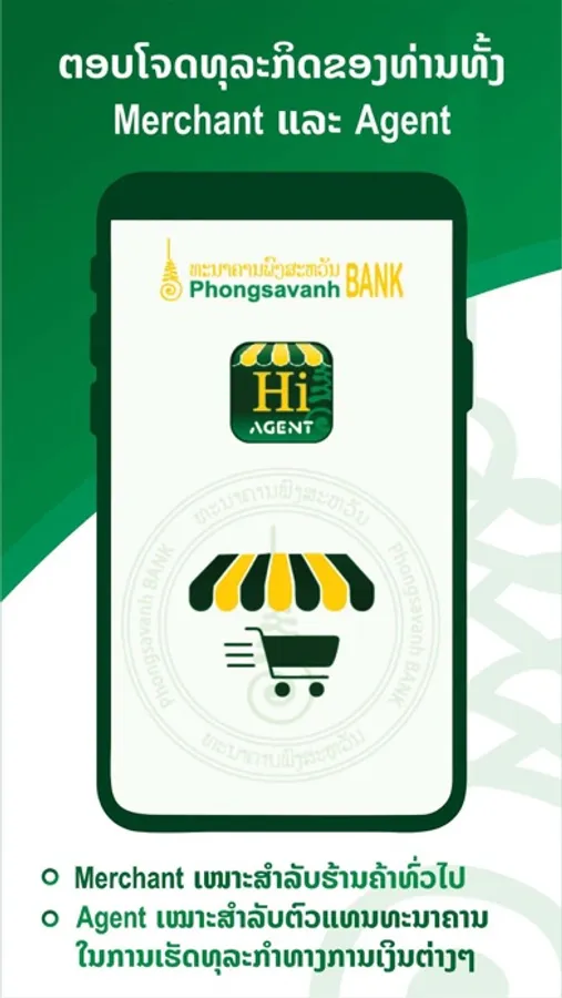 PSVB Hi Agent App is an app of Phongsavanh Bank system that is designed to help Agents/Merchant perform their operations more quickly and effectively: