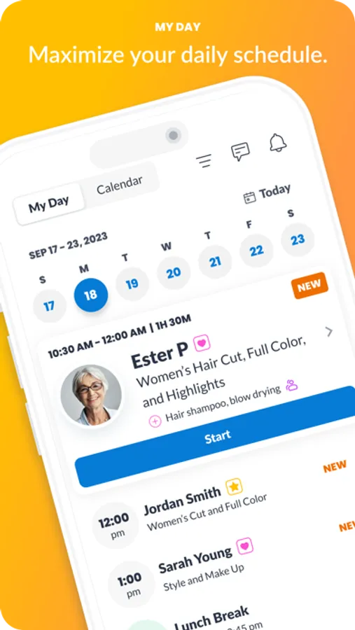 Our app simplifies your scheduling process. View your appointments effortlessly in a sleek calendar or list format. Instantly access details about your guests, their chosen services, and even discover which other providers they will encounter throughout the day.