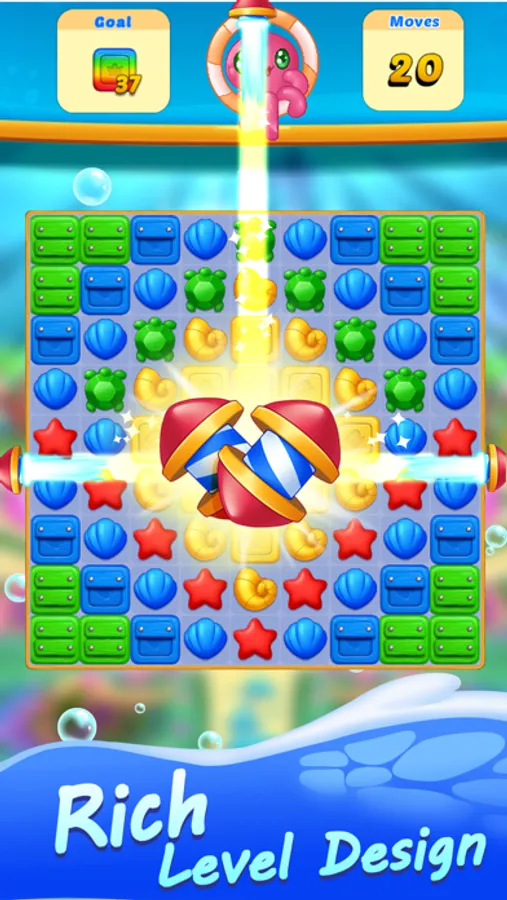 -There are seaweed, octopus, dolphins, beach volleyball, jellyfish, - octopus, and all kinds of cute fish