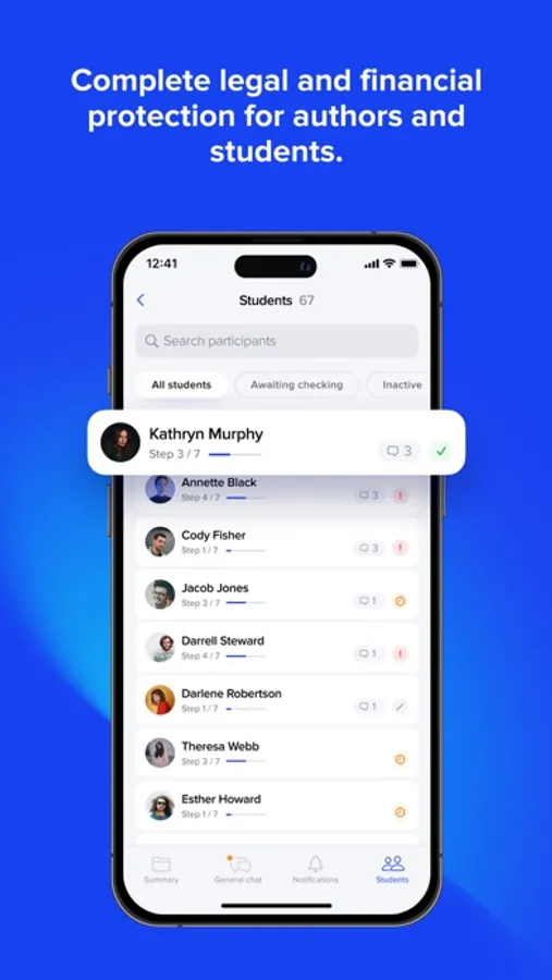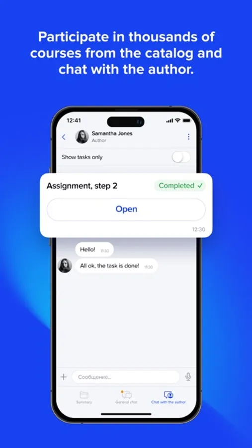 Engage with learners through group and individual chats, homework assignments, and progress tracking for each participant