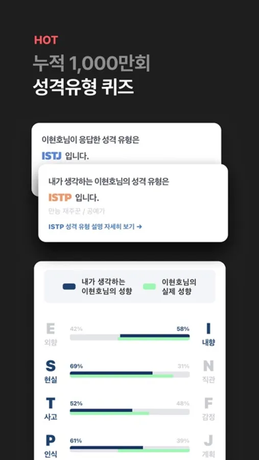 평소 궁금했던 성격유형에게 질문하고, 성격유형별로 생각이 얼마나 다른지 확인해보세요