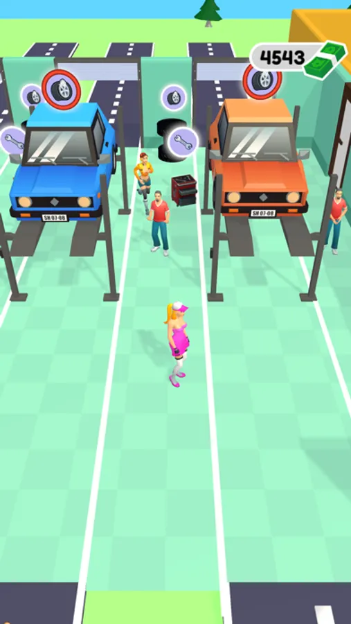 Running a successful auto center is a lot of work! You can hire new staff to take charge of the shop and employ repair bots to fix up cars while you watch the cash roll in.