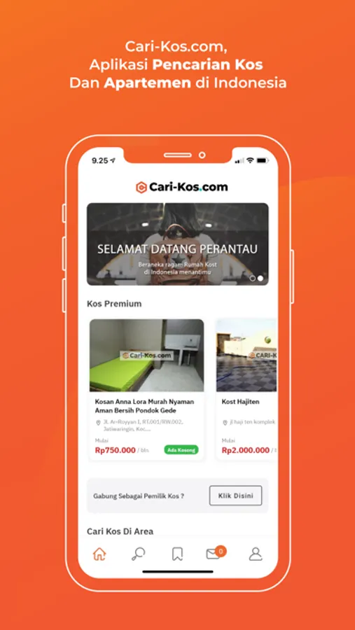 Tunggu apalagi, install Cari-Kos.com sekarang dan dapatkan kemudahan dan kecepatan dalam mencari Kos Idaman!