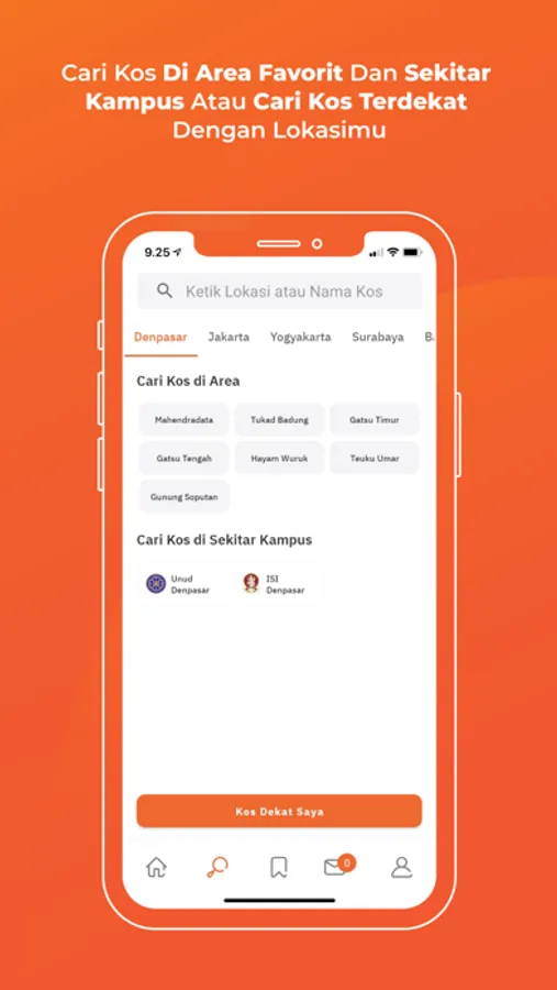 Pengguna juga dapat mencari dan memilih kos dekat kampus atau universitas.