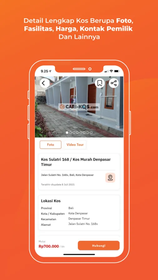 Halaman detail pada Cari-Kos.com sangat lengkap dan akurat dalam memberikan Informasi Kost. Terdapat gambar/ photo kos yang diupload langsung oleh pemilik kos, harga bulanan, harga mingguan (jika ada), harga harian (jika ada), alamat kost lengkap dengan posisi dalam peta, status kamar kost, fasilitas kamar kos, fasilitas bangunan kost, fasilitas sekitar kost, no telp pemilik/ pengelola kost yang bisa dihubungi melalui SMS, telepon atau WhatsApp dan masih banyak fitur lainnya yang akan memudahkan pengguna menemukan kost idaman.
